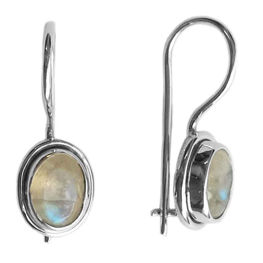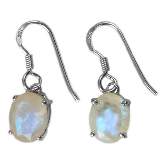 Boucles d’oreilles pierre de lune arc-en-ciel en argent massif 925