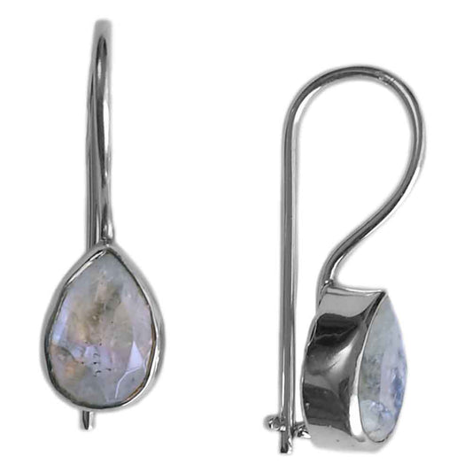 Boucles d’oreilles pendantes pierre de lune arc-en-ciel en argent massif 925