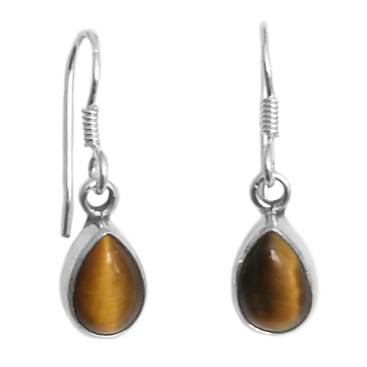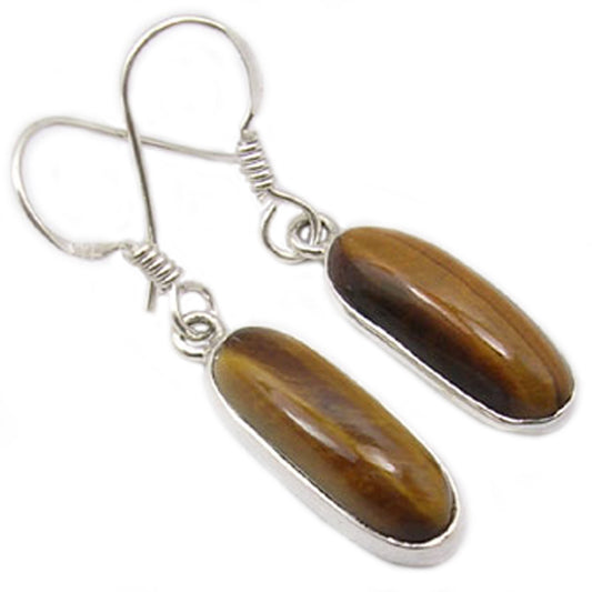 Boucles d’oreilles pendantes oeil de tigre en argent massif 925