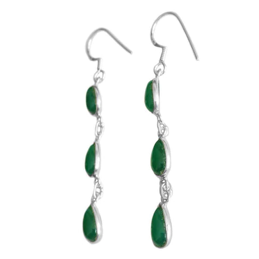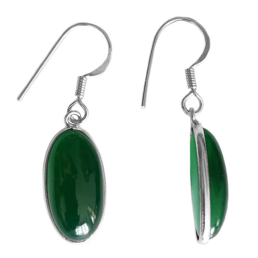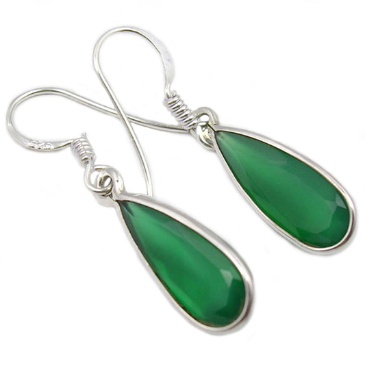 Boucles d’oreilles pendantes onyx vert en argent massif 925