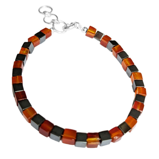 Bracelet cornaline et hématite en argent massif 925