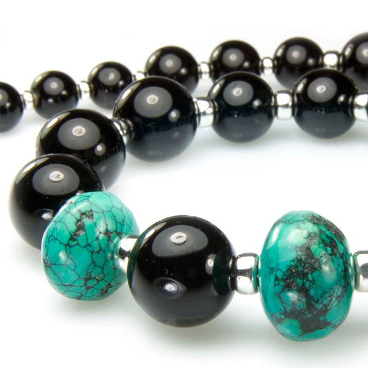 Collier d’onyx noir et turquoise en argent massif 925