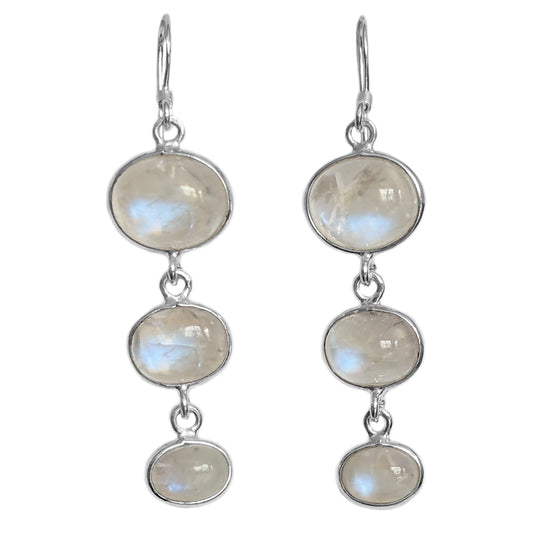 Boucles d’oreilles pendantes pierre de lune arc-en-ciel en argent massif 925
