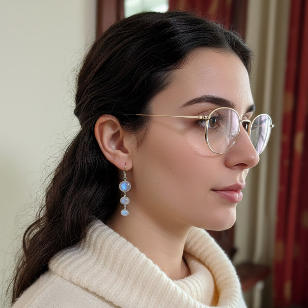 Boucles d’oreilles pendantes pierre de lune arc-en-ciel en argent massif 925