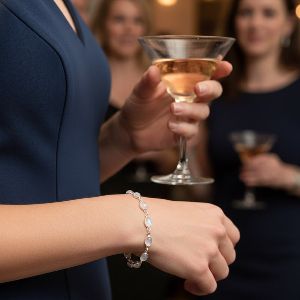 Bracelet en pierre de lune arc-en-ciel serti clos en argent massif 925