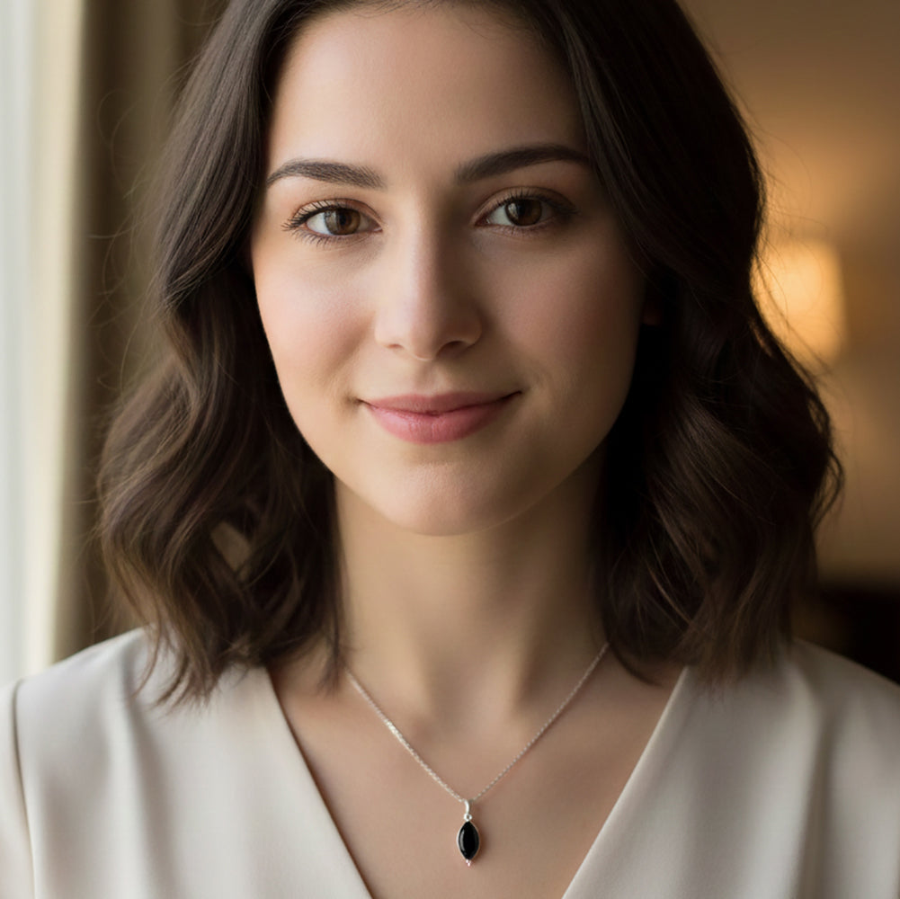 Pendentif en onyx noir serti clos en argent massif 925
