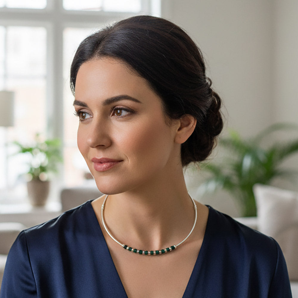Collier en malachite en argent massif 925